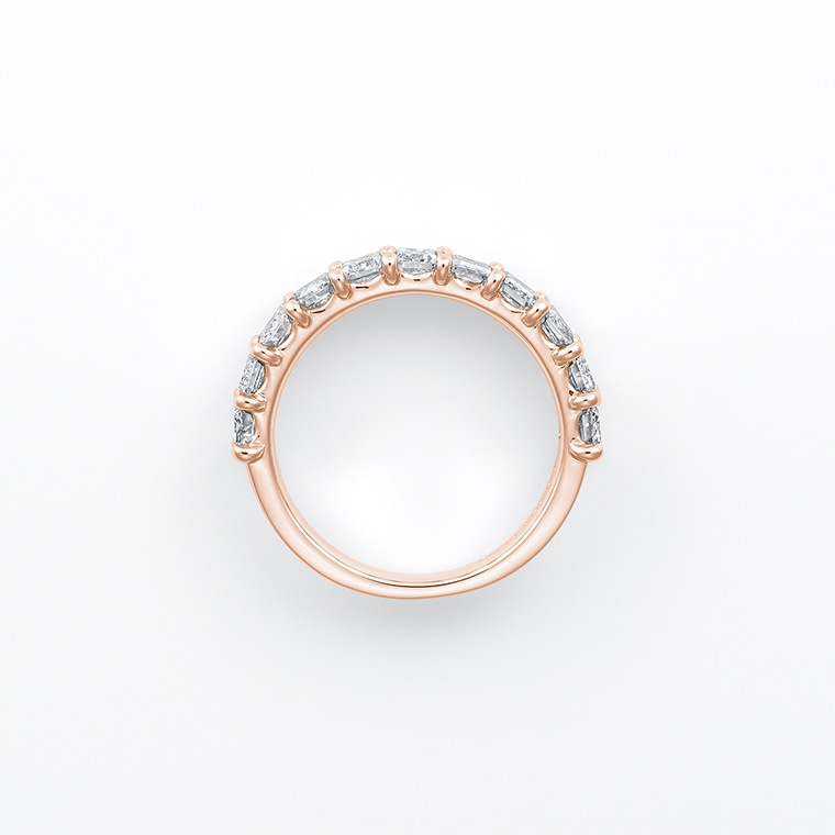 透明感ある輝きとモードな雰囲気のエメラルドカットを贅沢に11石使用した特別なエタニティリング。