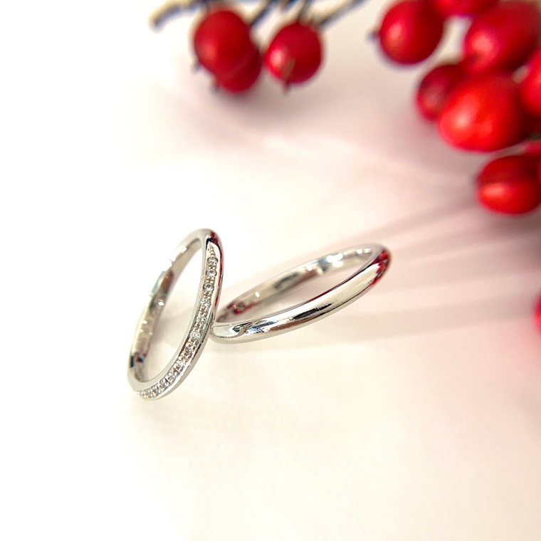 職人の技巧が溢れる赤スグリのマリッジリング、