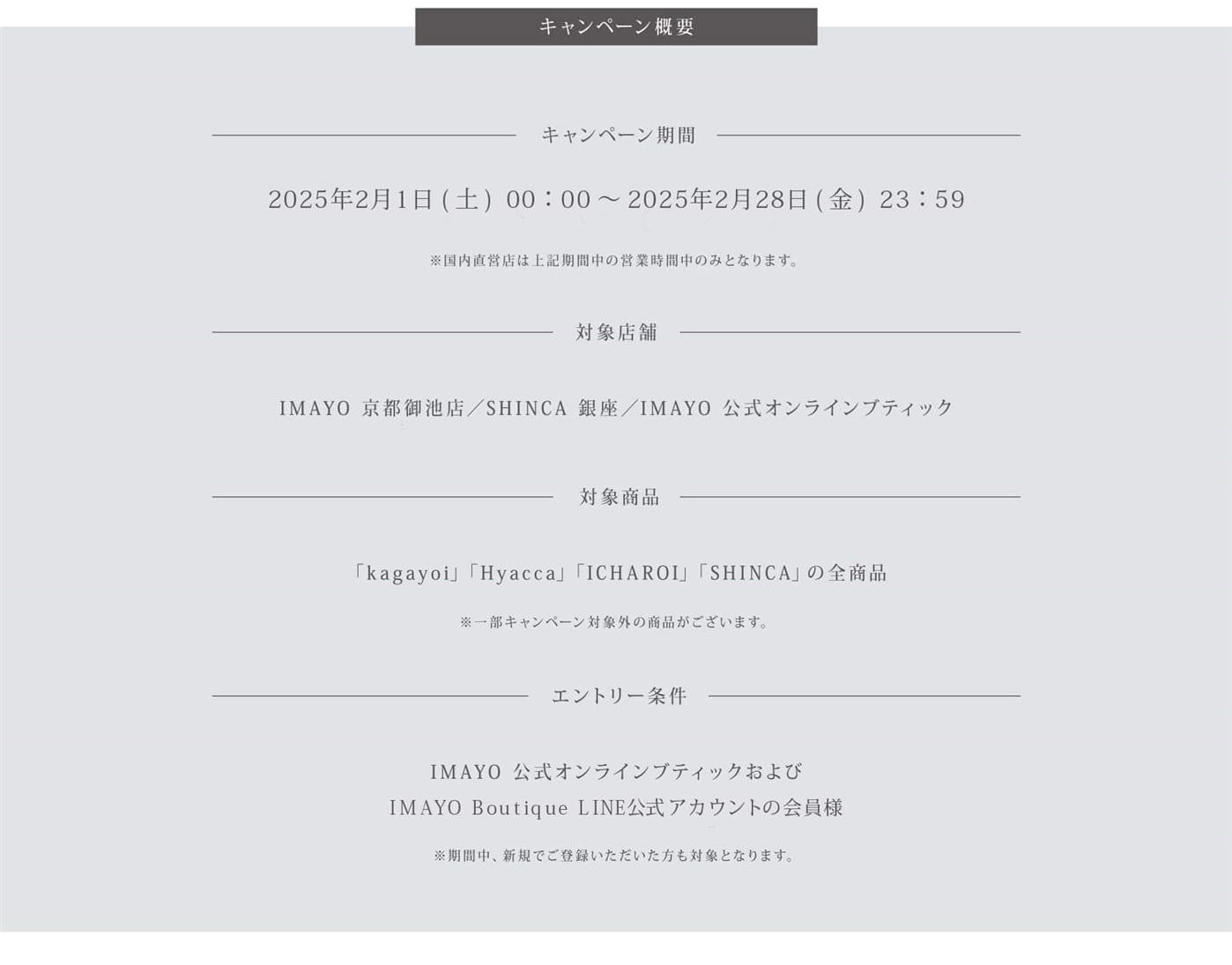 - ・IMAYO Boutique リワードプログラムについてはこちら。