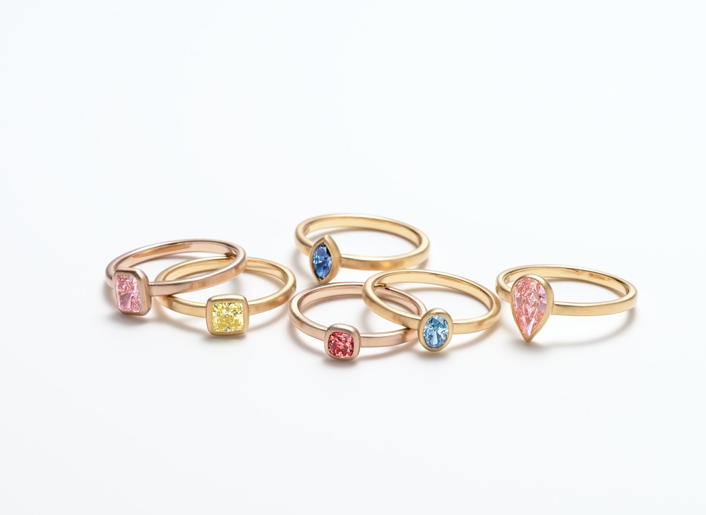 これまでPOP UP SHOPでしかご覧いただけなかった、カラーラボグロウンダイヤモンドのリングコレクションが、国内直営店にて初お披露目。