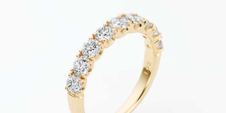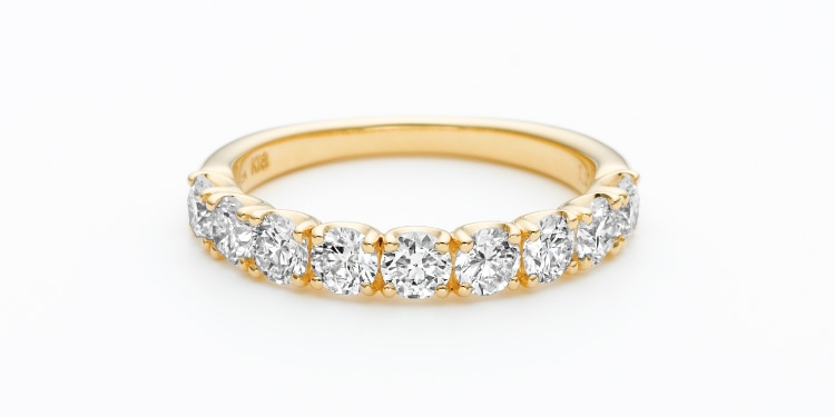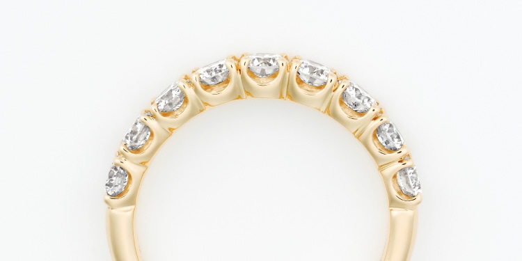 またハーフエタニティリングは、半周はメタルになっているので、引っ掛かりや、当たりを気にする必要が少なく、日常生活の中でも安心して身に着けていただけます。