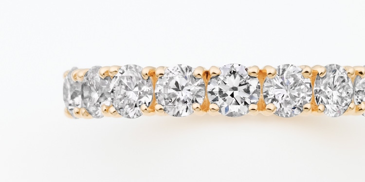 0.15カラット以下の大きさのダイヤモンドは鑑定は受けるこことができません。しかし、ずらりと横一列に並んだ時に、上下のメレダイヤモンドの幅が合っているか、色が揃っているか、一つずつ肉眼でチェックしています。これは、長年培った、少しの違いも見逃さない、ジュエラーの腕の見せ所でもあります。